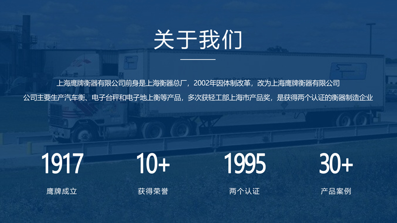 上海鷹牌衡器有限公司是上海衡器總廠轉制的企業(yè),前身是上海衡器總廠,創(chuàng)建于1917年,是地磅等衡器設計、制造廠家,主營電子地磅、電子秤以及地磅維修,2002年因體制改革,改為上海鷹牌衡器有限公司!